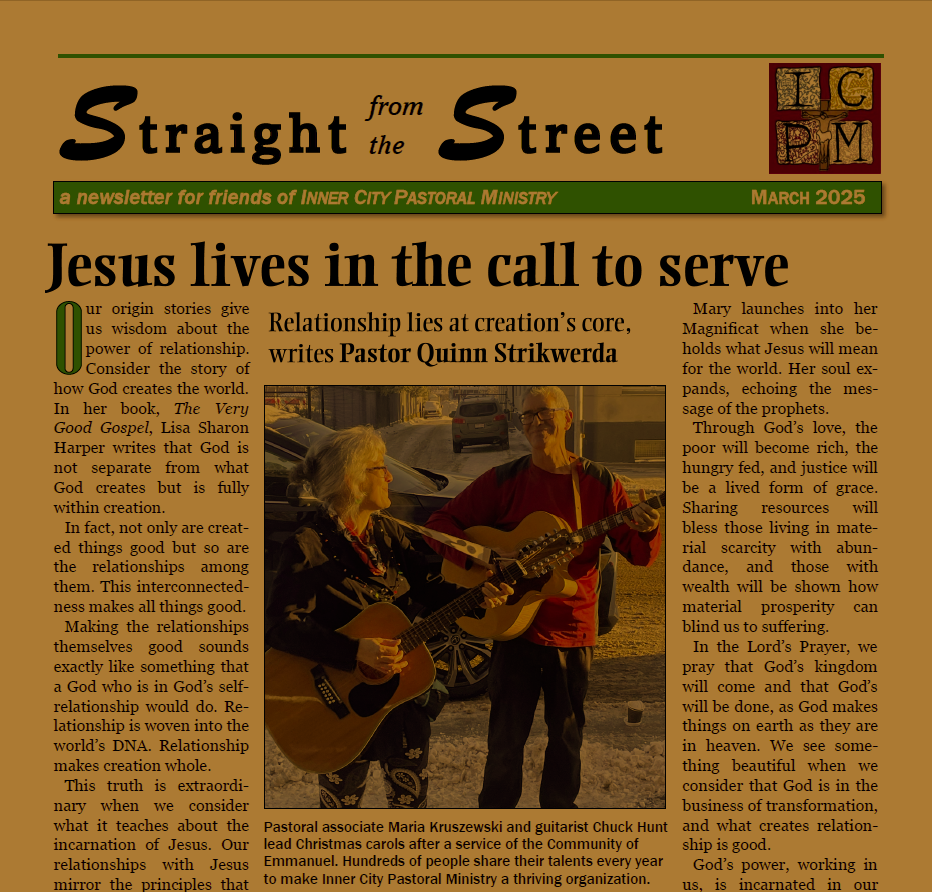 Inner City Pastoral Ministry (ICPM) is an ecumenical Christian ministry of presence serving the people of the inner city of Edmonton. It was started in 1978 by members of the United Church who recognized a need for a church in the Inner City. ICPM is now jointly sponsored by four denominations: United, Roman Catholic, Anglican and Lutheran.